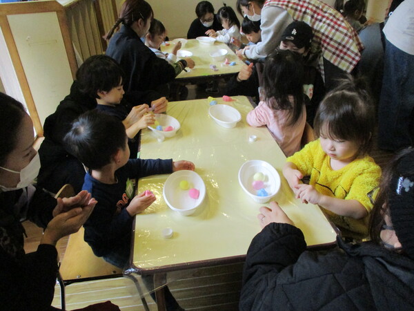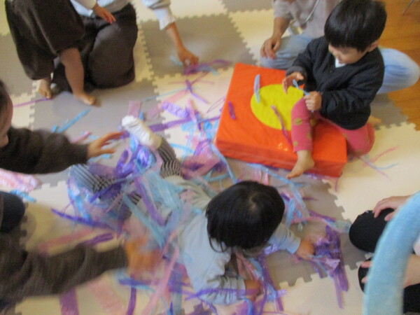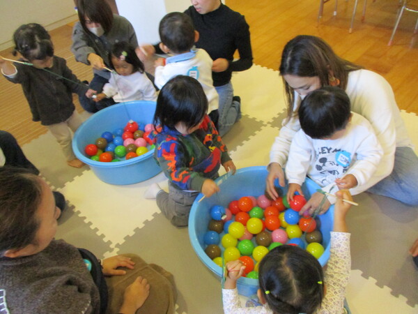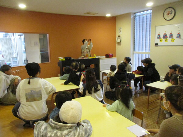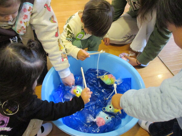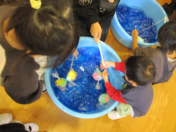 今週は花紙とビニール袋を使って、さかなをつくりました。 花紙は好きな色や枚数を選んで、くしゅくしゅと丸めたものをビニール袋に入れて完成! 2色や3色、色は一緒でも花紙の入れ方・目の貼り方でそれぞれの「さかな」になりましたね! 作った後は、みんなで釣り竿を使って、魚釣りをしました! 真剣な表情で釣り、嬉しそうに釣れた魚を見せてくれました😊おうちでも遊んでみてね! 次回は11月25日(火)にクリスマス製作をします。 11月のご予約はこちらから。12月のご予約はこちらから。ぜひご参加ください! |