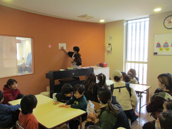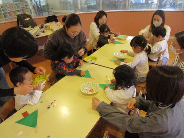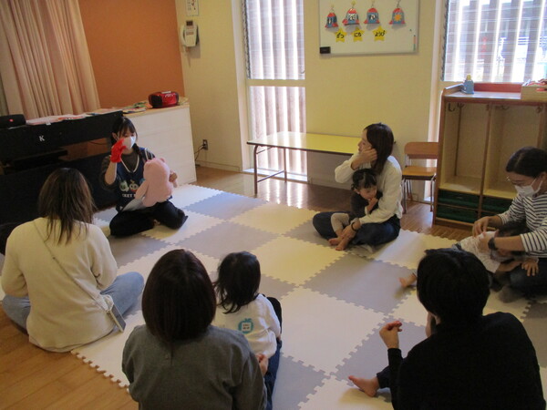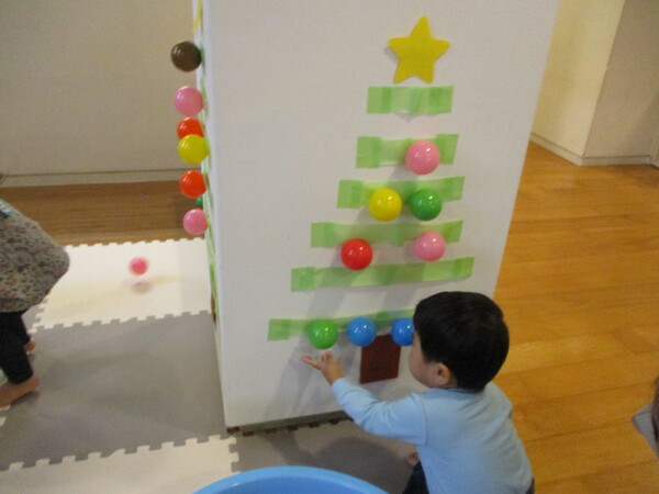 今週はクリスマスツリー製作をしました。 花紙をちぎり、指先を器用に使って小さく丸めたものをたくさん貼りました! 貼るものが多かったですが、みんな一生懸命取り組んでいましたね😊 もうすぐ12月!おうちでもクリスマスツリーを飾ってみてね🎄 先週に引き続き、手遊び「くさのなかから」を行いました! 手で顔を隠し、歌詞に合わせて「ちらっ」と覗く様子が可愛らしかったですね♡ 「どうぶつでんしゃ」の踊りもしました!来週も踊ろうね〜! 次回は12月2日(火)にクリスマス製作をします! 年内は最後になりますのでぜひご参加ください♪ご予約はこちらから。 |