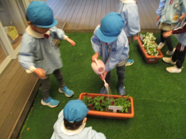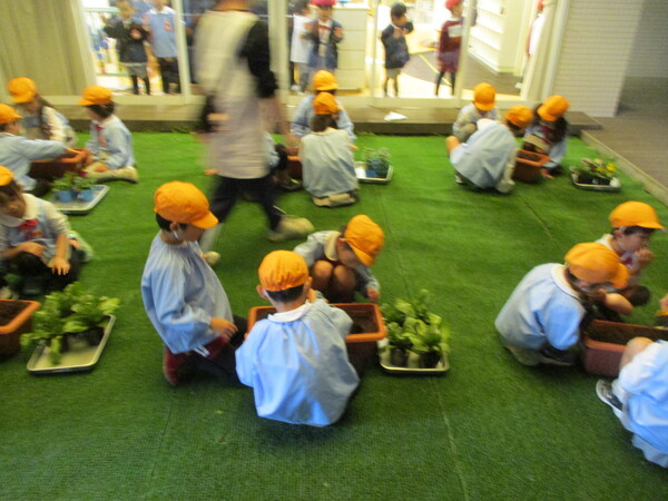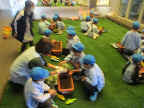 2027年に横浜で行われる「GREEN EXPO」の一環で、プランターと苗をいただきました。 今日は年長組のみんなでなんと50株のお花を植えました! お花を植えるのは初めてのお友達も多く、プランターと苗を見るだけで大盛り上がり!! 先生たちにお手伝いしてもらいながら、苗を自分でプランターに植えました! 「僕が植えたのはコレだよ!」「私はパンジーを植えたよ!」と嬉しそうに教えてくれました! 年少さんや年中さんもお部屋の窓ガラス越しから興味津々に覗いていましたね。 まだ咲いてない苗にはどんなお花が咲くのかな…?明日からお花のお世話をよろしくね😊 |
