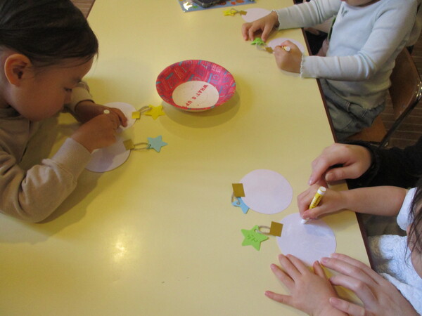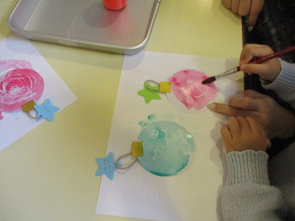 今日は絵の具を使って「にじみ絵」をしました! クリスマスオーナメントの形をした白画用紙に白のクレヨンでお絵描き! 描いた線が見えないけど、その上から絵の具でなぞってみると… あら不思議!!さっき描いた白い線が浮き出てきました! みんな不思議そうに出てくる模様を見ていましたね! 次回は1月13日(火)にバイキンマンのコマづくりをします。 今年たくさん親子教室に遊びに来ていただきありがとうございました! 1月の予約はこちらから。来年もご参加お待ちしています😊 |