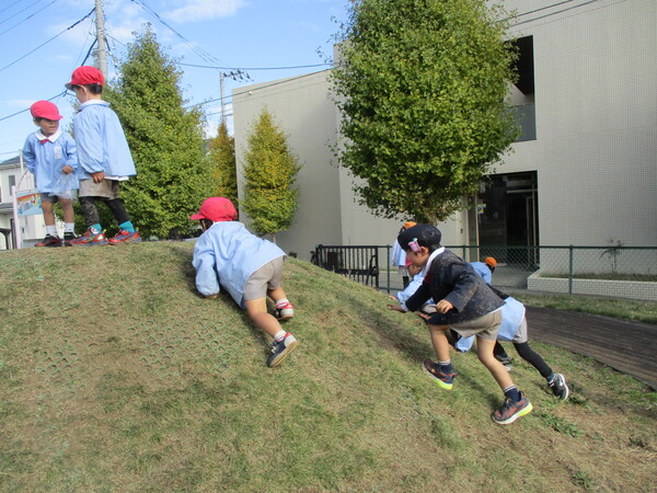 浜見平幼稚園では昼食後に園庭でたっぷりと外遊びを楽しんでいます! 年長さんは恒例のドッジボール。4月に比べるとボールも速くなりましたね! 三輪車ではスイスイ漕いでいたり、後ろにお友達を乗せて走ったり… 園庭の端っこにある小高い山では、年少さんが一生懸命登っていました。 時にはお友達の手を取り、登れるようにサポートする優しい場面もありました! 寒くても元気いっぱいのお友達です😊 |