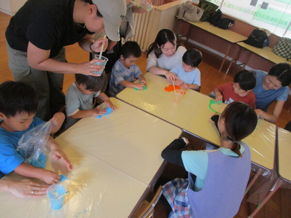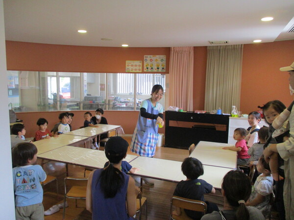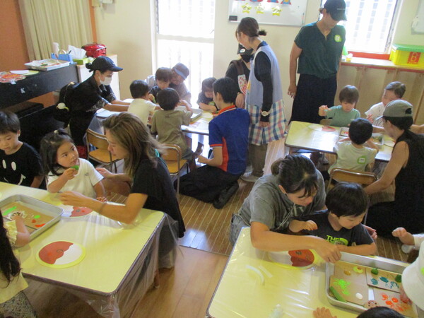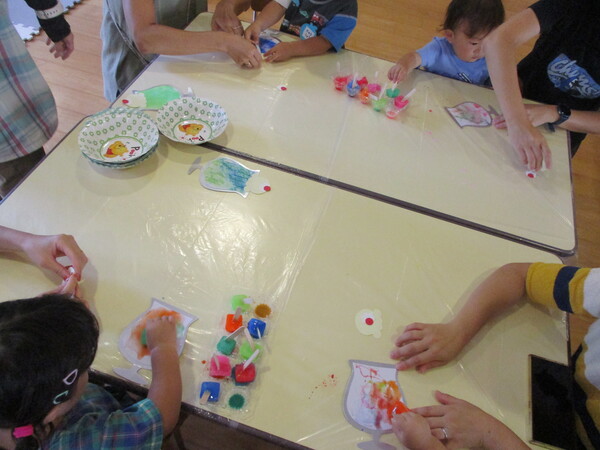 昨日は野菜スタンプをしました! 今回使う野菜の実物を見せると、「ピーマンだ!」「れんこん!」と教えてくれました。 まずは画用紙でカレーライスを作り、そのあとカレー部分にスタンプをしました。 野菜に絵の具をつけてスタンプをすると、野菜の断面がくっきりと写る様子に興味津々のお友達でした! スタンプをたくさんして、具沢山なカレーライスになりました! 来週はお月見製作をします!また、10月の予約もできますので、ぜひご参加ください😊 9月の予約はこちらから。 10月の予約はこちらから。 初めて参加される方は初回登録をお願いします!(こちらから) |