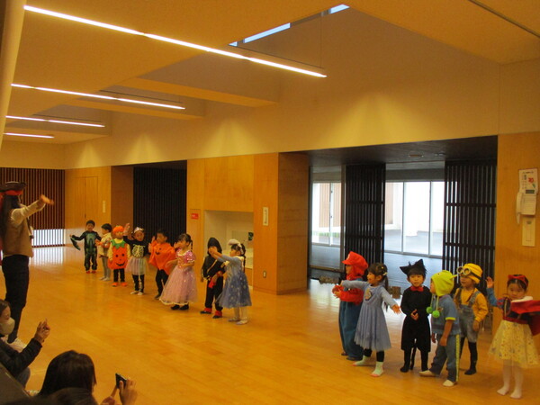 水曜日には秋まつりがありました! 子どもたちはそれぞれ好きな仮装をして幼稚園に来ました。 先生たちももちろん仮装でお出迎え!そして今年は保護者の方々も仮装をしている方も♡ まずはハロウィンの踊りを踊りました!運動会に引き続きかわいい踊りでしたね! そしていよいよクイズラリー!お題の書かれたカードの答えの先生を探し、見つけるとお菓子をゲット! 「バイオリンが弾ける先生」「子どもの頃おかあさんといっしょに出演したことがある先生」などなど今年もユニークな出題でした! ラリーがすべて終わると、お菓子でいっぱいのハロウィンバッグになりました! 幼稚園で少し早いハロウィンをみんなで楽しみましたね🎃 |