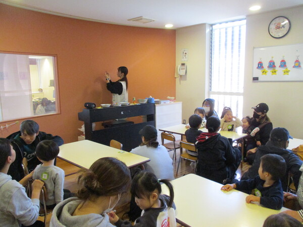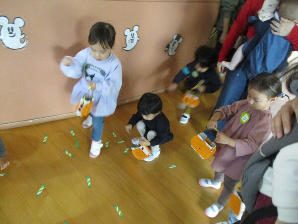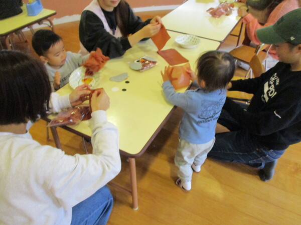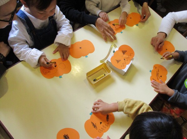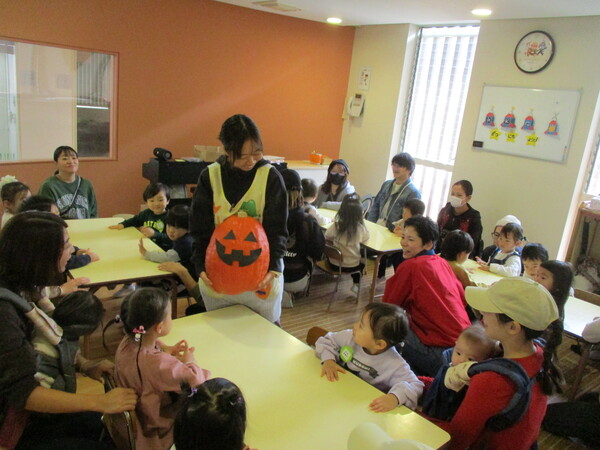 大きなカボチャを見せると「ちょっとこわい…」「わ〜おっきい!」とびっくりのお友達。 今日はクレヨンで顔を描いたジャックオランタンをティッシュ箱に貼り、ハロウィンバッグを作りました! かわいいバッグができたら、お菓子探しゲームのはじまり!お部屋や廊下など画用紙で作ったお菓子を探しに行きました! 「もうひとつのお菓子はどこかな…?」と探し、みごと見つけると嬉しそうなお友達でした😊 親子教室でもハロウィンを楽しみました🎃思わず「カボチャ食べたい!!」と声が上がっていましたね!(笑) 次回は11月4日(火)に「みのむし製作」をします!ご予約はこちらから。 <お知らせ> 31日(金)まで願書を配布しています。ご希望の方は幼稚園までお越しください! |