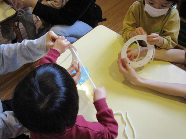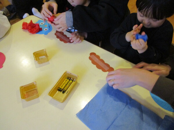 今日は紐通しを用いた製作をしました。 穴の開いた台紙に紐を刺して引っぱってを繰り返し、裁縫をするように真剣に取り組んでいましたね! 紐通しをしたものを使って雪だるま製作をしました! クレヨンで目や鼻を描き、それぞれ可愛らしい表情の雪だるまになりましたね⛄ 次回はお寿司製作をします!次回の予約はこちらから。3月の予約はこちらから。 ぜひご参加ください😊 |