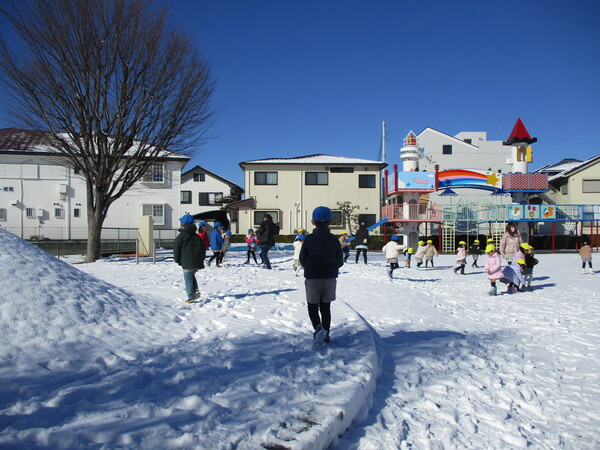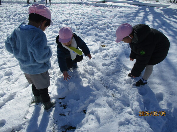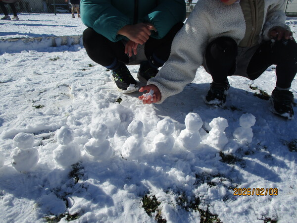昨日の雪が積もって、園庭は一面真っ白! こんなことはなかなかない…ということで全学年で雪遊び!❄ 雪玉を作って投げて遊んだり、雪だるまを作ったりとぞれぞれ楽しみました! みんなで雪遊びができてうれしかったね😊 |