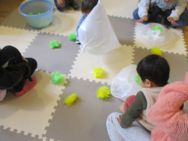 昨日の親子教室はぶどう製作をしました。 フラワー紙をくしゃくしゃと丸めてビニール袋に詰めました! 小さな両手を使い、一生懸命丸めていましたね! 完成したぶどうは洗濯ばさみのにはさみ、かごを持ってぶどう狩りごっこもしました! そのあとは養生テープの接着面にカラーボールを付けたり、テープをたたいてボールを落として遊びました。 シンプルな遊びですが、子どもたちは夢中になって何度も取り組んでいました!ぜひおうちでもやってみてください😊 次回は園行事があるため、1週あいて10月29日(水)にハロウィン製作をします!ぜひご参加ください! また、11月の予約も本日からできますので下記からよろしくお願いします。 10月の予約はこちらから。11月の予約はこちらから。 |