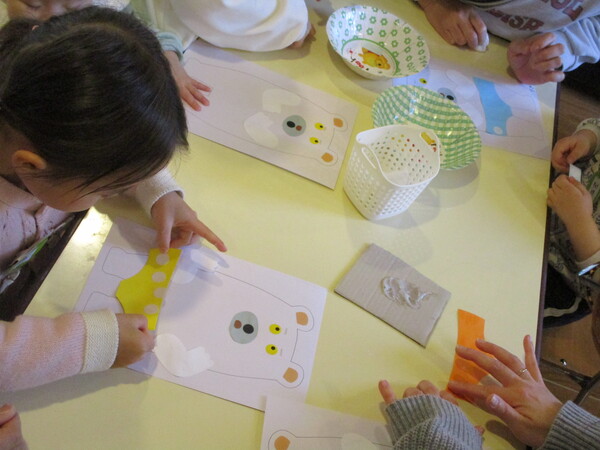 絵本「しろくまのパンツ」を読んだ後に、しろくまのパンツを製作をしました。 のりの使い方にも慣れてきて、1本の指で塗れるようになりましたね! 画用紙のパンツにはいろいろな色があり、好きな色を選びました! 説明しているときにはもう「あの色にしようかな…」と決めているお友達もたくさんいましたね! しろくまさんのように素敵なお兄さんお姉さんパンツ履いてみてね〜! 次回は紐通しで雪だるまを作ります! 2月のご予約はこちらから。ご参加お待ちしています😊 |