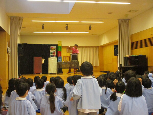今日はアンディ先生のマジックショーがありました!! なかなか見ることができない手品に興味津々のお友達でした! ショーの最後には、アンディ先生とみんなで一緒に「ワン・ツー・スリー」とおまじないをすると、 一つの箱からたくさんの箱が出てきました!! 「もう一回!」と何度もアンコールしてもさらに出てくる箱に大盛り上がり! 子どもたちはもちろん先生たちもびっくりなマジックショーでした😊 |